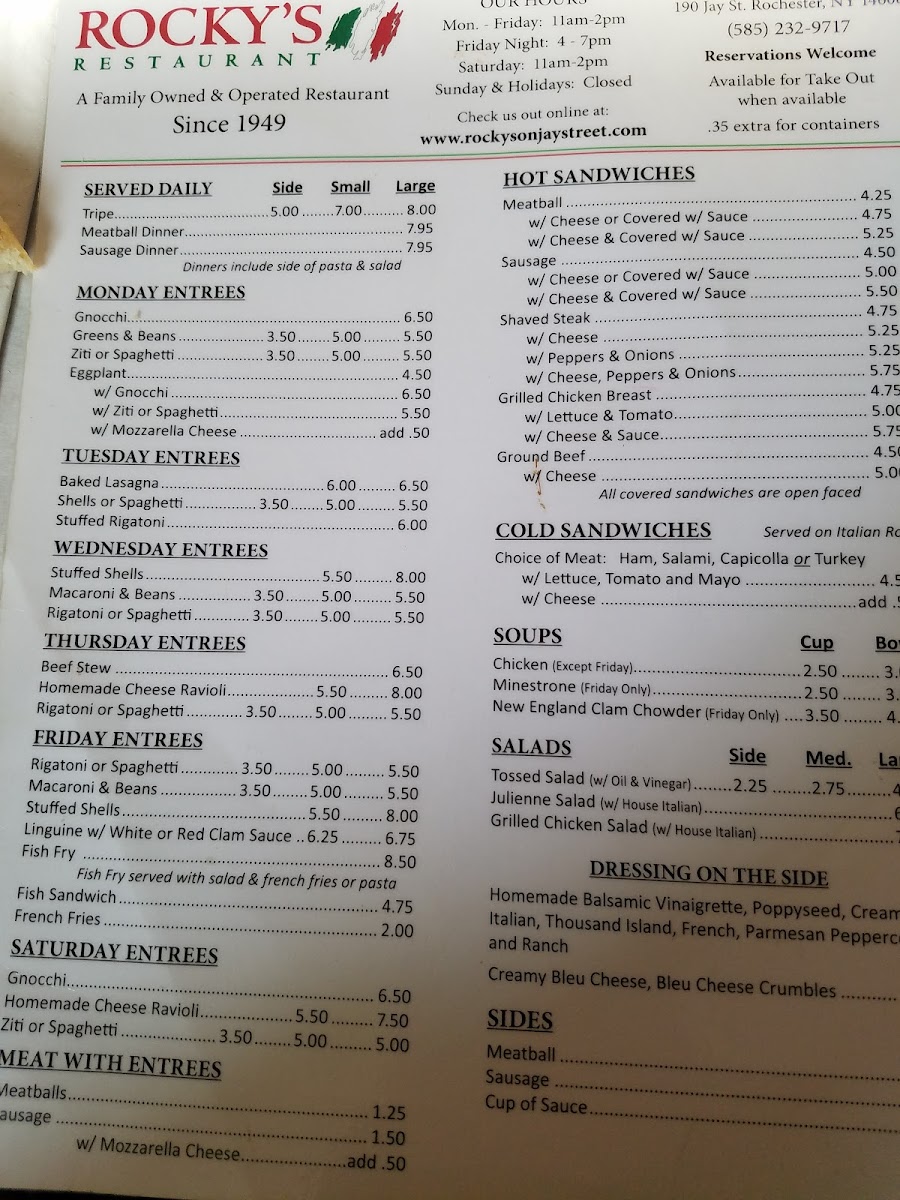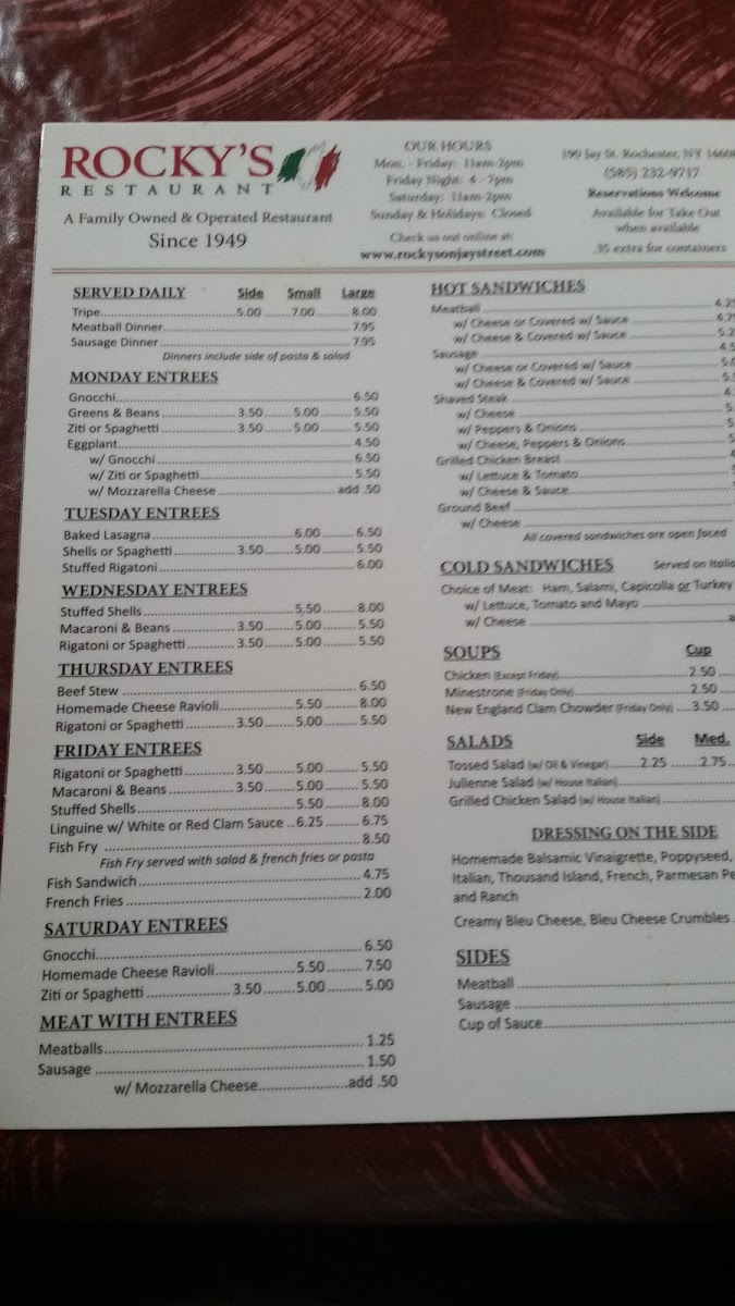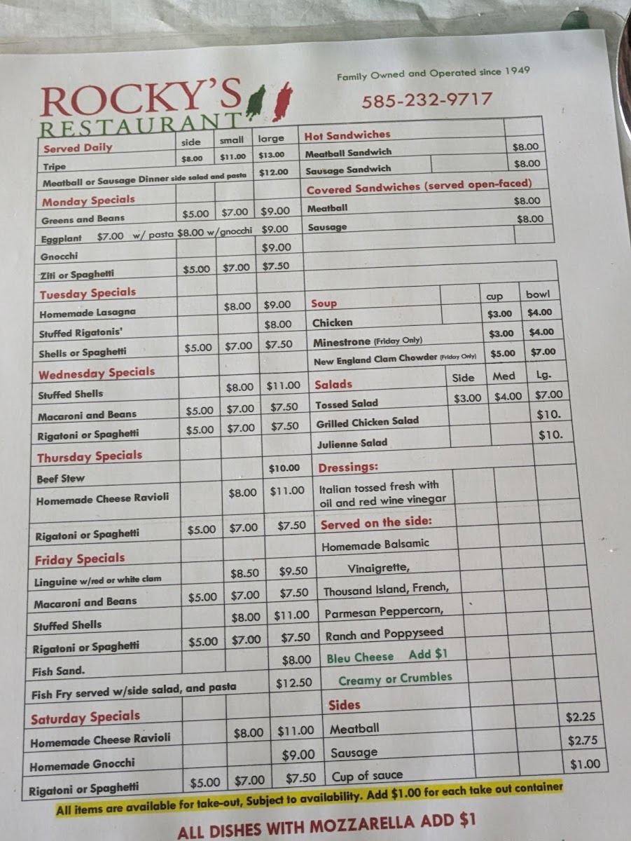 Rocky's Menu
