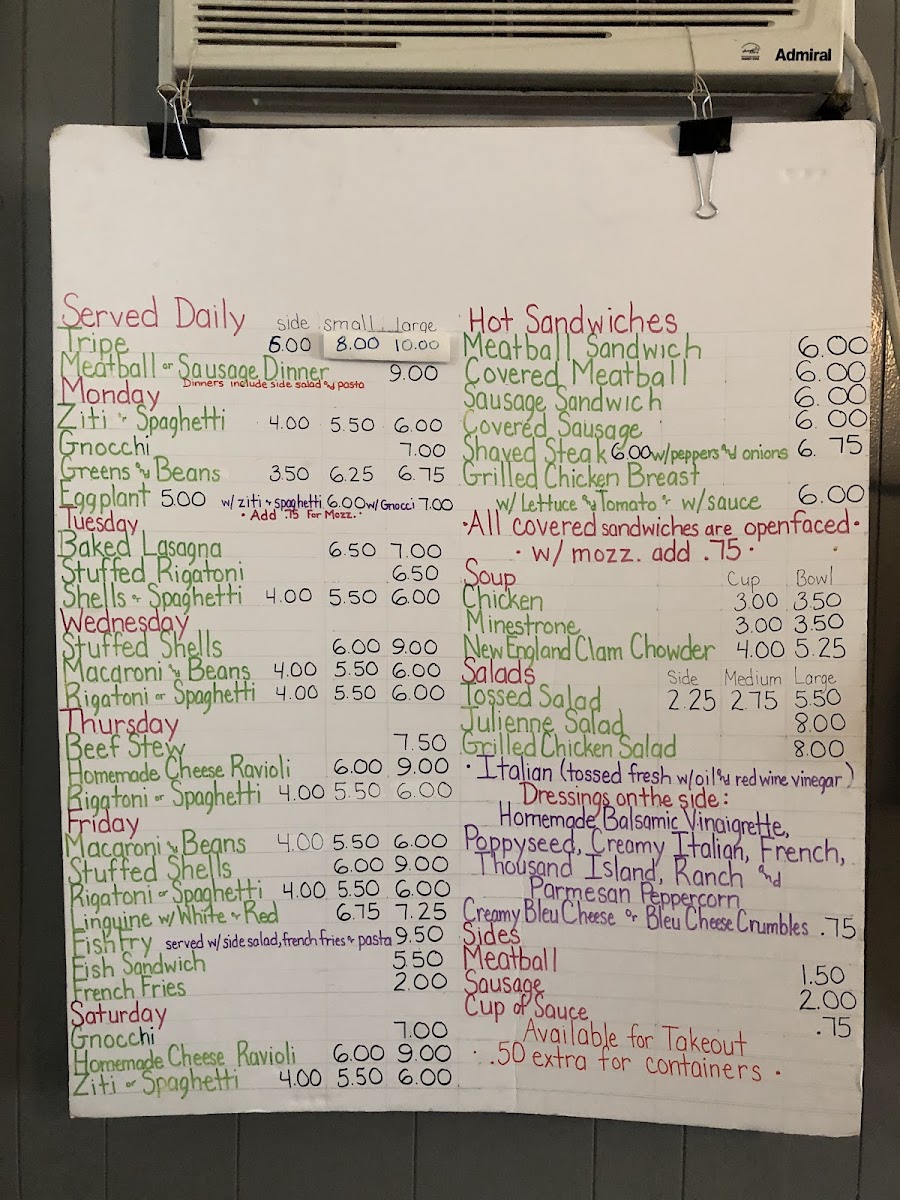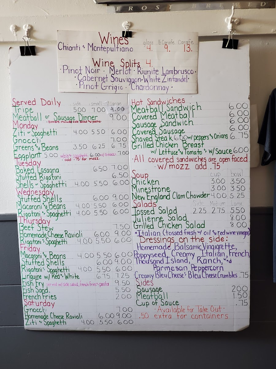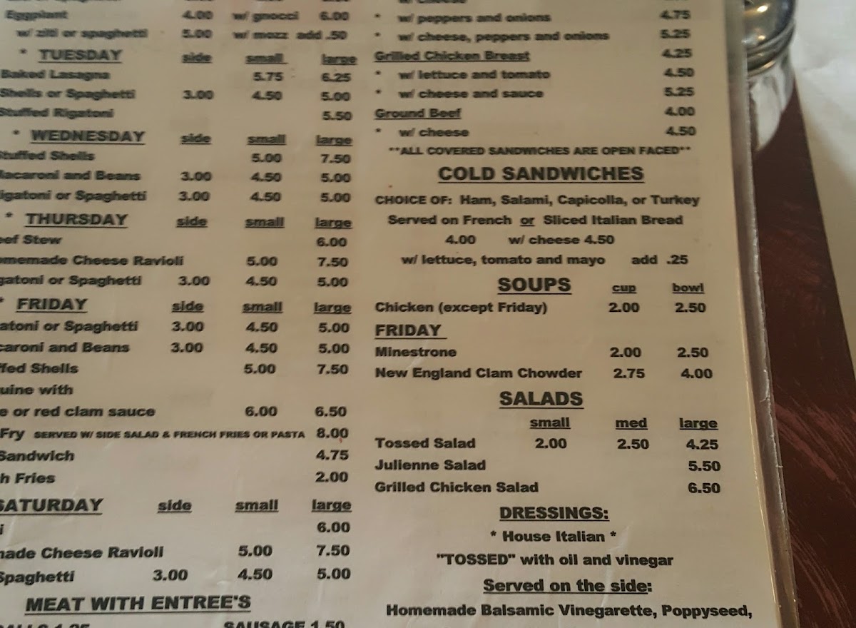 The menu features satisfying staples like spaghetti and meatballs, homemade ravioli served with meatball upgrades, and gnocchi paired with savory sausage. Lighter options include fresh garden salads with bleu cheese crumbles and simple yet flavorful sides such as greens and beans, all fitting smoothly into the warm and unpretentious atmosphere of the restaurant.